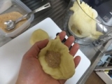 クイジナートのファンサイトファンサイト参加中フードプロセッサーならクイジナートということで、クイジナートフードプロセッサーのモニターさせていただいているのですが、キッチンの一角において、すっかりヘビロテしちゃっていますよ!!さて、フードプロセッサーって、野菜やお肉をミンチってイメージしかなかったのですが、クイジナートは実はパンやお菓子にも大活躍!これを使えばベタついた生地も手軽につくれちゃうかもとひらめいた私生地のベタつきがネックだったこちらでクイジナートを使ってみました♪ホットクまあ、こちらのホットクミックスを使っているのですがお手軽につくれちゃいますでも、ホットクミックスを使っても、生地ってベタつきませんか??今まで作り方通りに作っていたら生地がベタついて結構苦労しました先日の料理教室でフォカッチャを教えていただいたときに仕込み水は少なめにって教えていただいたので、それを応用して、レシピではぬるま湯120mlと書いてある部分を水100mlに変更して生地作りに挑戦(フードプロセッサーで捏ねているうちに温かくなってくるので、水の方が仕上がり温度がちょうどよくなるようです)使うのは、生地こねブレードクイジナートにいれるのは、箱の中に入っているイースト、ミックス粉これをいれてパルスを数回全体がまざったら、スイッチをいれて、水100mlを加えていきます全部水を入れ終わったら、後はこね上がりをまつだけ手作業だったら10分くらいかかっちゃうのですが、これなら2-3分で捏ね上がっちゃうのでとってもスピーディーですよヾ(@^(∞)^@)ノあとは、付属のジャムを入れて丸めてフライパンで焼けば完成!!これだったら朝の忙しい時間やおやつの時間にも手軽に作れちゃいますねしかも、生地を作っているときは放置できちゃうから、洗い物とか次の作業の準備とか、他の事が出来ちゃうのもとっても魅力♪生地こねって手間がかかる作業ですが、このこねる工程をクイジナートが代わりに手伝ってくれるとかなり負担が減ります!最近、パン作りの捏ね作業はクイジナートにお願いしちゃっているのですが、こねあがりも早いし、かなりおススメですよ!!さて、今回のホットク作りに使った付属のジャム、余っていませんか??捨てるのももったいので、これは別の機会に使う事に次回はこの余ったジャムを使ったパンのレシピを紹介しますキッチンを素敵に彩るクイジナート 続きを見る ['close']