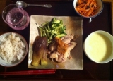 数年前に著書果物レシピの本★を発見してからずっとファンのお料理教室の先生浜内千波さんの新刊本を参考にした食卓棒棒鶏ご飯ビシソワーズ人参サラダメインの棒棒鶏のレシピを参考にさせていただきました生姜をたっぷりと使ったたれがとても美味しいと家族にも好評ご本では、きゅうりのみが添えられておりましたが、焼きなすも添えてみましたこのたれが想像通り茄子にもバッチリと合っていて、焼きなすをいつもとひと味異なる味付けで楽しむことができましたこちらは創作レシピのキャロットサラダ人参を塩揉みしてレーズンを入れ、バルサミコとオリーブオイルで和えてみましたこちらはちょっとオリーブオイルの香りが突出した感じを受け、味の改善が必要そう葉ものなど添えると美味しそうビシソワーズ棒棒鶏の鶏肉を茹でたスープは捨ててはもったいありません!スープに入れて残らず栄養摂取!ここにお肌になコラーゲンがたっぷりですよ暑いからと冷たいものばかり食べているとうっかり根菜類を取り損ねますじゃがいもに人参と根菜類多様して栄養チャージいたしました参考にしたご本はこちらです同書では、献立としてレシピが紹介されており、この棒棒鶏には水ぎょうざ、中華風コーンスープが紹介されていました今回は献立ではなく一品のみ作りましたが、次回は献立自体も真似してみようと思います扶桑社ファンサイトファンサイト参加中 続きを見る ['close']