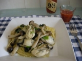 しめじとほうれんそうを炒め、最後にパスタと牡蠣を入れて炒めてみました