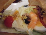 エビ、ツナ、タマゴの他にレタス、トマト、オリーブ?かな?
