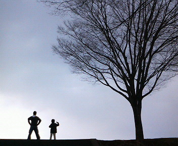 私の実家へ帰省した時、夕暮れ時に、子供達を撮りました 偶然、木と子供だけが写り、澄んだ空気まで、感じられる様な 大好きな1枚になりました45年前の、まだ幼さの残る シルエットは、もう2度と撮れないので、大切にしています