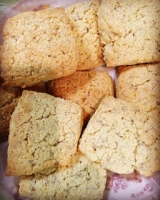 普通のチアシードよりも、更に栄養価が高いと言われている、ホワイト チアシードを使って、スコーンを作ってみました♪ このスコーン、我が家で大人気で、焼きあがった瞬間にほぼ売り切れてしまいました 今回使ったのは、この材料 ホワイト チアシード 大匙1 ホットケーキミックス 1袋 バター 60グラム オメガミルク 50CC 私は塩味がきいているのが好きなので、バターは有塩タイプを選びましたオメガミルクは、たまたま家にあったから使ったので、普通の牛乳でもOKです はい、ここから、とっても簡単な作り方です♪ 1、ホットケーキミックスと、ホワイトチアシードを、泡立て器で混ぜます泡立て器で混ぜるのがポイント 2、続いて、ミルクを入れて混ぜます 3、引き続き、溶かしたバターを3回くらいにわけて、まぜます 4、生地を1センチくらいの厚さに伸ばして、適当な大きさに切り分けます冷蔵庫で少し冷やしてから切り分けると、うまくいきます 5、170度のオーブンで25分間焼いて、できあがり♪ 本当は、この後、冷ましてからチョコレートをディップするつもりだったのに、焼きあがったそばから、美味しい、美味しい!と、家族が全部食べちゃいました たしかに、ホワイトチアシードが香ばしくて、美味しいんです!! 15の手順で、1時間くらい短時間でできる美味しいスコーン、チョコをかければ、バレンタイン用にもなるかも?! オススメですよー♪ オーガランド楽天市場店ファンサイト参加中 続きを見る ['close']