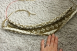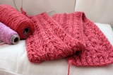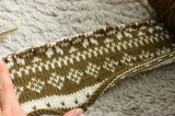 編み込み模様はちまちまと進めてますほーら くるんくるん(笑)えーとこのままだと進み具合がわからないので広げるとこんな感じ メインの雪柄が見えてきまし