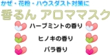 そろそろ花粉症の季節になりましたねぇ 花粉症対策には飲み薬も大事だけど、マスクも大事だよね 最近では7色のきれいなマスクのコマーシャルも見るようになり、おしゃれな小物って感じだよねマスクもファッションや気分に合わせて色を変えたり、楽しめるようになるなんてね そんなおしゃれなマスクが出てきて驚いていたら、もっとおしゃれで実用性のあるマスクを発見 それは 香るんアロママスク 1袋3枚入り \198 花粉症のひどい人は、マスクの内側にミントユーカリティートゥリーカモミールジャーマンなどのアロマオイルを垂らしたり工夫している人もいるよね このマスクはすでに の香りがついてるから便利 しかもかわいい淡い色のついたマスク 花粉症でちょっと憂鬱な気分になるけど、良いアロマの香りとかわいい色のマスクで気分も改善 香りがつづく「アロママスクカプセル加工」のマスク はじめに、マスクを指先で軽く揉んで「香り」を調整して使用 マイクロカプセルがはじけて、香りが出てきます 1枚1枚個包装になっているの衛生的だし ちょっとかわいいし、アロマ効果もかなり期待大だしこのマスク使ってみたいよねぇ 花粉対策 香るんアロママスク(ヒノキローズハーブミント)モニター10名募集! 続きを見る