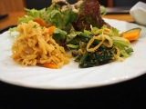 自然食レストラン「元氣亭」でr> ヘルシーな玄米自然食ランチをいただきました お店は、JR両国駅東口から徒歩2分 第二酵素ビル両国エコロの2階です こちらのお店のこだわりメニューは、 玄米や雑穀米など、身体に優しい「ごはん」 とことんこだわり抜いたメニューを用意されています 階段を上がると、 まずそのこだわりの素材がお出迎えです お店の入り口を入ると 居心地のよさそうなテーブル席はほぼ満席 窓際の席も埋まっていました 美味しいものは皆さん、良くご存知なのですね 空いたときに写真を撮らせてもらいました笑 自然食のこだわりを堪能したいと思い、 日替わりでメニューが変わるという 本日のランチと一口デザート&有機珈琲を頂くことに 本日のランチ 820円 玄米ごはん、味噌汁、サラダ、夏野菜のみそ煮 ごはんは、有機玄米、雑穀入り玄米、 雑穀入り5分焚きごはんの3種類から選べます 私は玄米をいただきました 自宅では絶対に食べれないですからねぇ 玄米ごはんって柔らかい 匂いもないし、白米と変わらないのではないかな これで栄養価も高いというから、優れものですね メインはこの夏野菜のみそ煮 おおぶりの野菜がごろごろはいっています どれも柔らかく似てあるので ほくほく感をゆっくり噛みながら味わえます くるま麩も入っていたのにビックリ 固めのくるま麩私好きなんですよね でもなかなかお目にかかれなくて ここで頂けてラッキーです てんこ盛り野菜が嬉しいサラダ きんぴらとほうれん草のお浸しも添えられて ボリューム感アップ 全部薄味ですから、健康面でも安心して頂けました ランチに付けるとサービス料金になる 有機珈琲と本日のデザート(アーモンドチョコの豆乳プリン) ブラジル産の有機珈琲は 豆乳ミルクもついていましたが、 ブラックで飲むと、 そのコクとまろやかな風味がよく伝わってきました いやー、美味しい、美味しいお代わりしたいぐらい デザートも甘すぎず、口当たり良く このサイズが食後にまたピッタリときています 甘党も満足できる味と量だと思いました お店は土日休み 平日は予約しないとなかなか入れない様子 お料理はそれだけの価値あると思います 美容や健康に配慮した自然食なのに、 とてもリーズナブルなお値段で美味しいのですから 他のメニューもまたぜひ食べてみたいです ※1階は自然食品のショップになっていました お店自慢の玄米酵素サプリもあって 健康食に興味があれば、試してみたい商品ばかり ゆっくり店内をみてみるのもいいですよ 玄米酵素ハイゲンキファンサイト参加中 続きを見る ['close']