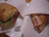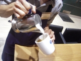 「試食会レポート1」の続きです エクセルシオール カフェさんの、 「山王タワー」店での試食会が始まりました 3、4人につき一人のスタッフがはいっての試食会 まずは代表的ドリンクの「カフェラテ」から ミルクたっぷりのラテのアート見事です ミルクの温度を確かめながらつくっていくので、 コツをつかむのが難しいそうです 試食2つ目は、「パニーニ」 イタリアのサンドイッチです パンの種類を変えたメニューの中から、 ハーフサイズにした二種類を試食しました [ブロッチェン]スモークハム&ゴーダチーズは必ずつきますが、 あともう一つは、ふたつのパニーニから選びます [チャバッタ]ローストチキン&ラタトゥイユと [フォカッチャ]プロシュート 私が選んだ試食用パニーニは、 [フォカッチャ]プロシュート(下左)と [ブロッチェン]スモークハム&ゴーダチーズ(下右)です アツアツの [ブロッチェン]スモークハム&ゴーダチーズは チーズが口の中でもとろけるようで、美味しかったです ホットなサンドでチーズの味を楽しんだら、 クールなサラダ感覚のサンドも気になります プロシュートは、生ハムとベビーリーフたっぷりで サラダ丸ごと食べているようでした 試食会第3番目のメニューは、「デザート」 フランボワーズかショコラバナナのフレンチトーストに、 プラスメニューをしたお好きなドリンク付 「エクセルシオール カフェ」の裏メニューとして、 プラス50円で、カスタマイズメニューができるとか ドリンクに一品追加するメニューです 私は、あつかましくも、2つ、お試ししてしまいました 新商品のアイスの「ハニーラベンダーミルクティー」に タピオカをプラスしてもらい、ミルクを豆乳にしてもらいました 山盛りトッピングの生クリームは 本日の大サービスだとか 粒粒感があっても、ストローで吸い込めるタピオカ はっきりわからなくても、 ドリンクの中にしっかり入っています 豆乳に替えても、タピオカのせいか、 ミルクと変わらない味でした てんこ盛りの生クリームが スイーツ好きにはうれしい一品です これでSサイズだというからビックリ フレンチトーストも今日は特別にハーフ&ハーフ 見た目もしっとりとしたトーストは、 食べやすい大きさにカットされています ショコラとフランボワーズ、 両方の味が楽しめて、大満足でした 女性をターゲットにしているだけあって、 女子が喜びそうなメニューがいっぱい ドトールとの違いもそこにあるそうです たとえば、ケーキなら、フルーツ系を用意しているとか 今回の期間限定スイーツは、 カラフルなフルーツミルクレープでした 白とピンク、2種のホイップと4種のフルーツを 重ねたミルクレープは、見た目もかわいく、食欲をそそります 食べたかったのですが、試食メニューではありませんでした ちょっと残念 自宅近くに「エクセルシオール カフェ」がないのですが、 メニューのこだわり方を知って、 ますます気になるカフェになりました そして、試食会のラストには、 ラテアートの実演とお土産が待っていました このお話は、また次回にします ドトールコーヒーファンサイトファンサイト参加中 続きを見る ['close']