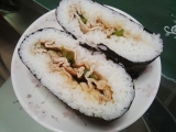 Hello 浜乙女ファンサイトファンサイト参加中 今流行りの『おにぎらず』 私も、浜乙女sanの海苔で挑戦 『おにぎらず』を作るのに最適な海苔 片面にまんべんなく岩塩がついてるので 程よい味に仕上がりますよ この日は、13:30から『プレパパママコース』の予約が でも、旦那sanが帰ってくるのは12:45位 お昼車で食べようかと『おにぎらず』初めて作ってみました ウインナー焼いたり、卵焼いたり 簡単な具材で短時間で作れちゃったよ いいねぇこの海苔 しかも、普通のおにぎりだと 具が、梅干とか佃煮とか気持ち物足りないんだけど これ結構お腹満足 意外と、野菜なんかもいれられるから いいねぇ この日は、姪っ子がお泊り おやつ食べ過ぎて、夕食残しまくり そこで登場『おにぎらず』 次の日の朝に、残りのご飯とおかずをチンして 『おにぎらず』作ってみました いいねぇこの海苔 片面に付いた塩のお陰で 昨夜の残りだから、味薄くなっちゃってる感じだけど安心 お陰で、姪っ子chanも朝からモリモリ残さず 食べましたよぉ 時間がない時とか、ほんといいと思います 時間がある時は、もう少し具材いっぱいにして 作ってみたいなぁ 続きを見る