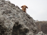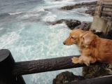 昨日は、昼までゴロゴロしてたんですが そうだ!蓬田の産直みたいなところの食堂にいっておいしい刺身定食を 食べよう♪と思い立ち、津軽半島側の隣町の蓬田村までドライブ(笑)ところがっ! 激混み(o_ _)oバタッ さらに刺身類は全部売り切れ( ̄▽ ̄;) あきらめました(^^; もうちょっと北上してみるかということになり、途中の海水浴場の 食堂を見たけど、ラーメンばっか(爆) せっかく海に来たので、お嬢とお散歩(^^; 海に落ちてたホイールキャップが気になるようです(^^; かもめもぷっかぷっかしてました(^^; その後、平舘まで行ったけどパッとせず、さらに北上(笑) 道の駅いまべつで、わかめおにぎりでも食べるかということになったけど こちらも満席( ̄▽ ̄;) 竜飛岬まで行っても食べ物はたいしたものもないし、県外ナンバーの 車がすごい多いので道路も混んでるだろうと思って竜飛までは行かずに Uターン(^^; 今別町の高野崎でまた海を見ることに(笑) 海に下りるには階段をずっと下りる必要がありまして すごい風が強くて大変でした(^^; 早くおろして がんばってまた階段を上ると、違うほうにも海に下りる階段が( ̄▽ ̄;) お嬢、はりきって降りていきました(o_ _)oバタッ 5月の津軽海峡です冬の日本海ではありません(笑) 海すごいね♪ 風が強くて波しぶきがすごいので早々に退散(笑) また階段を上る苦行がありますが、お嬢はご機嫌(^^; 天気悪くて見えにくいですが、北海道も見えてました♪ 方角は指差すほうです(爆) 風が強いためお嬢の耳がすごいことに(^^; 黄色いのは、こないだモニプラで当たったコランコランのブレスレット♪ 売店で生干しイカを焼いたのと若布のおにぎりを買いました♪ おにぎりおいしかった♪ 昨日はそんな1日でした(笑) コランコランファンサイトファンサイト応援中 続きを見る
