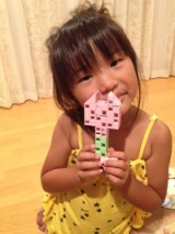 今回はモニプラさんで初めて当選したアーテックブロックの紹介です! ハンコヤドットコムファンサイト参加中 「Artecブロック」は、学校教材のトップメーカー「アーテック」が開発した、縦横ななめに自由に接続できる“世界初”のカラーブロックです ブロックの形が特徴的で、立方体のブロックで全ての面に複数の穴があり、穴の数も2つだったり4つだったりとバラバラ、そして立方体1つに1個の突起部分がついています 立方体なので積み上げやすく、穴がたくさんあるので斜めにずらして組んだりすることで今までできなかった形をタテヨコナナメと表現することができます! 今回いただいたのはアーテックブロックシリーズの中から、54ピースのブロックが透明ポーチに入った人気の「アーテックブロック ポーチ54」 、カラーは「パステル」です女の子にもぴったりな淡い色合いの可愛らしいブロックです! 商品が届くと早速、 「新しいブロック買ってくれたんだ」と喜んで袋を開けて遊び始めました 対象年齢は3歳からということで、確かに突起部分は1つで穴がたくさん空いているので小さな子供でも簡単につなぎ合わせることができます!結合部分も固くないので取り外しも問題なくできますただ三角のブロックは指の力がしっかりしていないと取れないかもしれません 袋に入っていた製作例を見て自分で作ると張り切って作り始めましたが、いきなり1番難しいお城に挑戦して「できない」と言ったため最初は簡単そうなアイスキャンディーを作りなと勧めたところ数分でひとりで作り上げて満足そうに持ってきました! その後チューリップにも挑戦! 4歳半の娘ですがやっぱり斜めにつなげるところなどはまだ難しく葉っぱは作れませんでしたが、花はひとりで作ることができました! 使ってみた感想は、立体的にブロックを組めるせいか少ないブロックでも何を作ったかがはっきりとわかるところがいいと思います!噛み合わせもよく取り外しも簡単なので作って壊すの作業が小さな子供でもできます! 難しいところは突起部分は1つしかないのでちゃんと考えてつなげていかないとつけたいところにブロックを付けられないという問題が出てきます!この辺まで理解してブロックを組むにはもう少し上の年齢にならないと無理かなと思いました ブロックは対象年齢に合わせて買ってみても意外と使えないことが多く我が家では表示年齢2歳くらい下のものを買っていましたが、このブロックは比較的対象年齢が適正に表示されているのではないでしょうか アーテックブロック 続きを見る ['close']