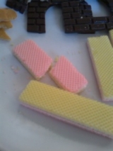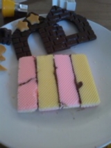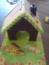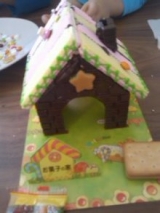 毎年やりたいやりたい言ってるお菓子の家づくり、今年は赤ん坊いるし…と思ってたんですけどやっちゃいました! ↑これ キットだよ おもにチョコとウエハースで作る模様つーわけで思い立った日に作業開始! 珍しく写真が多いんでご注意ください 淡々と写真ばかりです チョコを湯煎で溶かし付属の型にいれた ちょっとはみ出たけど気にしない! ウエハースはちゃんと個包装になってました サクサク!サックサク♪ 寒い冬だから けっこうすぐに固まりました 右の塊はえんとつだよパーツを溶かしたチョコでくっつけた けっこう難しかった ここでアクシデント発生!! 長男がウエハースを開けていたら、割ってしまった! パーツに予備はないので、一つでも欠けると家がスッカスカになるよ!! 食いしん坊の子がいる家とか特に注意っす なんとかくっつけた ウエハースはチョコでくっつけました アイシングも別にあったんだけど(お菓子の家キットには入ってない)最後のデコレーションに使う前に乾くのが心配で使えなかった チョコもすぐ乾くけど湯煎すればまた使えるし 付属の土台にのせーる! 床はないんだね 屋根を(パイルダー)オン!! あっ 屋根に隙間が!! 設計ミスか? 欠陥住宅です でもま、気にしない っていうか隙間をどうにかしようとすると壊れそうだよ! アイシング… 説明に書いてあったけど、すごい色です… 2色混ぜてきみどりー クリスマスカラー? そして家にあったトッピング的なもの たしか100円だったよ! 去年のクリスマス時期に買ったから賞味期限がアレですが…気にしない! ちょっとデコ 長男が屋根にのせています 傾斜があるからけっこうむずかしいよ そして…もしかして組み立てる前にデコるべきだったんじゃ…とか なんとか形になりました! 森のおうちイメージで クリスマスツリーはたまたまその日の朝食に作ったあまりを型抜きで抜いて作りました 個人的にはクッキーの上のきのこたちがかわいくて気にいってます そして… 中に人がいるよ! 完成するとすぐに食べたかがる子どもたち ものの数分で… このザマ! チョコはでかいし子どもたちにそのまま食べさせるのは抵抗があったので後日とかしてパンに塗ったりバナナにつけたりして食べましたー 今回はアイシングがうまくできたことが一番の収穫です あとコロネがいつもうまくできなかったんですが、テープではしを止めればOKということもわかりました またやりたいなー 共立食品お菓子大好きの会 ファンサイト応援中 続きを見る ['close']
