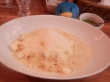 銀座のコリドー街にある生パスタバカの店、パストディオです普段この店ではパスタばかり食べてますが、タパスもあるんですねー一皿300円くらいでお手ごろまずはホタテとエビのソティガーリック風味にんにくチップがたっぷりですでも意外にさっぱり?エビもホタテもほどほどサイズですが、これくらいのほうが色々食べれていいかも 生ウニ&マスカルポーネチーズのジェノベーゼ和えと生ハムとガーリックバケットウニですよウニどれもちょっとつまんで酒を飲むのにちょうどいいですねーお酒の進む味 メインは天使のカルボナーラ一日限定20食ですどの辺が天使かというとチーズチーズが山盛りですカルボナーラと言いますが、チーズの味そして魔法のソースジェノベーゼソースですが、これをかけるとまた一味違いますちょっとずつソースかけて食べるのがお勧め今回もモニプラで当たって行って来ました 生パスタ専門店 銀座パストディオファンサイト参加中 続きを見る ['close']