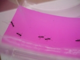 何年も前から雑貨屋さんで販売されてて、気になっていたありの巣観察 アントアクアリウム 2000年5月にスペースシャトルに乗ったということで、一気に話題になったものついに、今日からうちでもアントクアリウム ANTQUARIUMでアリの観察がスタート!!! 説明を読んだり、ありについて調べたりしてちょっと面白い(^O^)/ 基本的に、この容器にありを入れて観察するだけ このアントクアリウムのゲルが巣でもあり、餌でもあるんです つまり、餌やりもなし! まずはありを捕まえなきゃ♪ 「晴れた日」がベストってことで、福山市は今日は暑い暑い快晴!! (カビを持ち込む可能性があるからだとか) この容器だと10匹ぐらいがベスト あれぇ???あれぇ???? アリさんが全然いません(そんなに都会だったっけ???) 外のあまりの暑さに、私は断念 旦那さんが10匹ほど採ってきてくれました(^^)v ここで大切なポイント 1 同じ巣の元気なありを取ってくること 2 手で直接触らないこと アリは触覚で仲間の匂いを判別 だから、違う巣からとってくると敵とみなされてしまい攻撃をうけて 目も見えないアリですが、触覚で餌を見つけたなどの情報交換をにおいを使ってするんですって 人間が直接触ってしまうとアリが数日後に死んでしまう可能性が アリは危険を感じると「蟻酸」をだすので、自分の分泌した蟻酸で弱ってしまうんだとか 調べていたら、スタートのところで失敗している方が多いみたいなので (数日後すべてのアリが弱り切っているとか、他のアリを攻撃しているとか) アリを入れるときが1番大事なのかもしれません でも、こうやってアリのことを色々調べるだけでいい勉強ですよねぇ 子供たちの夏の研究としては、キットを与えることは安易に感じるかもしれないけど 観察に伴って、自分たち自身で色々調べるようにさせたらとっても勉強になるって思いました (親が全部答えをいったら、全く意味がない観察ですけどねぇ) アリの観察日記ブログを付けている方が「はじめに上手くいかなくって、子供がかわいそう」って書いてるのをみたんです そうですかぁ??? 「なんで、失敗したんだろう 触ったから?違う巣だったから?ほかに原因があるのかな?」 って考えることがいい勉強だと思います(^v^) 学校に提出する観察日記に、元気なのだけ書かなきゃいけないってきまりはないし スタートがうまくいかなくって、なかなか巣を作らないまま夏休みが終わったって、いいじゃないですか 巣の完成が目的じゃないですしね 観察中に何かに気がついたり、気になったりして「自分で調べる」ってことが大切なんです (あ!やばい、塾講師モードになってしまった!) キッズ用のアントクアリウムもあるんですね 半額くらいかなしかも8色もあるんだ! キッズアントを使った、親子のアリの巣観察レポートを発見こちらから キッズ用は、ゲルから自分たちで作るんだぁたのしそぉ(^^♪ さぁ〜て、アリさんを入れてから2時間ほど経過 なんか10匹み〜〜んな、1か所に集まってるんです さっきは自由に動いていたのに ここに巣を作りますかぁ? 初めのうちは入れ物に慣れるまでなかなか、巣を掘り出さないらしいんですがぁ たのしみぃ(^O^)/ まずはアリの種類を特定しなきゃかな 素人でもできるかなぁ 『日本産アリ類画像ベース』というすごいサイトをみつけた(こちらからどうぞ)これで特定できるかな!? このアントクアリウムは、モニタープラザさんのアウトライドブランドシップビルダー株式会社さんの企画で当選したもの (私の応募記事はこちら) ずっと気になっていたアントクアリウムなので、ありがとうございます(^O^)/ 観察日記を楽しみながらつけたいと思います♪♪ アウトライドブランドシップビルダーファンブロガーサイトに参加中 ブログを開始して約2か月がたちましたこのはてなのブログでは色々不便なこともでてきまして 今このブログのお引越しをしようと色々準備中です引っ越し前にはURLをアップするつもりですが、今までのブログが残るのか消えるのかもわからない、そんな初心者なものですから『福山備後INFORMATION』という同じ名前でブログを続けるつもりですので、もし表示できない時がきましたら、検索をお願いいたします私が思っていた以上に、多くの方がこのブログを見ていてくださり、本当にありがとうございます 続きを見る ['close']