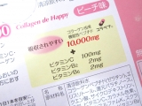 株式会社ニッタバイオラボさんから「ハピコラ10000」を提供いただきました 株式会社ニッタバイオラボさん 株式会社ニッタバイオラボさんは、ゼラチンコラーゲン原料の国内シェアトップを誇る新田ゼラチン株式会社さんの子会社として、皆様に安心安全で高品質な商品を販売しています現在、コラーゲンの良さをお伝えする商品として、コラーゲン補給食品、コラーゲン飲料、コラーゲン化粧品を展開し、より良いコラーゲン商品を企画販売している会社さんです ハピコラ10000の特徴 コラーゲン10,000mgでうるおい実感! 1本でたっぷり1日分のコラーゲン目安量(510g)をかるくクリア 特許取得のコラーゲン由来機能性ペプチド「コラペプ」使用 コラーゲンの吸収や代謝をたすけるビタミン類をプラス! ビタミンC 100mg ビタミンB2 2mg ビタミンB6 2mg 美肌成分もしっかり配合 安心のカロリー控えめ! ダイエット中にもオススメの脂肪分ゼロ、1本44kcal! 濃厚でおいしいピーチ味! ほどよい酸味のピーチ味美味しいから続けやすい! 保存料不使用、ノンカフェインです 原材料の効能を確認します コラーゲンペプチド(ゼラチン)、エリスリトール、還元パラチノース、クエン酸、サイクロデキストリン、香料、ビタミンC、カラメル色素、甘味料(アセスルファムK、スクラロース)、ビタミンB6、ビタミンB2 コラーゲンペプチド(ゼラチン)ハピコラ10000は、豚由来で、特許取得のコラーゲン由来機能性ペプチド「コラペプ」を配合しています コラーゲンとは?真皮(肌)、靱帯、腱、骨、軟骨などを構成するタンパク質のひとつです体内に存在しているコラーゲンの総量は、人間では、全タンパク質のほぼ30%を占める程多く、健康と美容を維持していくのにとっても必要な成分ですただ毎日知らないうちに少しづつ減少するコラーゲンは、50歳になる頃には20歳の頃の約4分の1まで減少してしまうんだそうですこの老化現象を食い止めることができたらよいですよね コラーゲンって本当は効果ないって聞くけど?効果がないってテレビやネットでやっていますが、かなりシビアなりん本人が効果があったんですコラーゲンの正体は実は、蛋白質ですちなみに低分子コラーゲン = コラーゲン分解物 = アミノ酸 です蛋白質を分解するとアミノ酸になるのですなので、コラーゲンは胃で分解吸収されるときはアミノ酸になっています一度分解されたアミノ酸が再びコラーゲンに合成されるとは限らないそうですでは、アミノ酸が肌に作用しているのではと考えました アミノ酸とは?私たちのカラダは6070%が水分で、20%がたんぱく質などのアミノ酸でできています食べたものを消化したり、髪の毛が伸びたり、呼吸をしたり、いろいろ考えたりできるのもタンパク質の働きで、生命活動に不可欠な成分なのですこのたんぱく質を構成している成分がアミノ酸ですアミノ酸は細胞など、体を構成する材料となるものですこれらの材料は絶えず生まれ変わりを行っていますが、アミノ酸が不足することに伴って、古い材料をそのまま使用して、細胞などを作ってしまうことになりますこれによって肌荒れを生じたり、肝機能が低下したりするなど、様々な不調をきたすこととなってしまいますまた、コラーゲンを経口摂取することでヒドロキシプロリンペプチドの血中濃度が長時間上昇すること、ペプチドが損傷した線維芽細胞を刺激し再生を促進することが明らかとなっていますなので、決してコラーゲンを採ることは無駄ではないと思いました コラーゲンペプチドとは?コラーゲンを酵素処理で分解し、低分子化したもので、食品として摂取した場合、水によく溶け、体内でアミノ酸に分解しやすいため、吸収性が高められるそうですゼラチン同様に水溶性を持ちますが、ゼラチンのように低温でゲル化させる性質はないとのことです一般的に「コラーゲン」と表記されている場合、「コラーゲンペプチド」を指すことが多いようです フィッシュコラーゲンとアニマルコラーゲンの違いは? フィッシュコラーゲンの特徴脂肪分が多く、水に溶けやすい1518℃ぐらいの低温でも体内に吸収されるたら、にしん、ナマズ、たいの表皮などからとられる (マリンコラーゲンとスカールコラーゲンという区別をする場合もあるようですマリンコラーゲンは皮や骨からとるスカールコラーゲンは鱗からとる) アニマルコラーゲンの特徴臭みが強い豚、牛、鶏の皮や骨からとられる(BSE問題で、牛のものはほとんどなくなりました)3542℃で吸収される豚由来のコラーゲンはのアミノ組成が人間に近い鶏由来のコラーゲンはムコ多糖類も含むアミノ酸総量は大差はないので、自分の体質に合ったコラーゲンを摂取したいですね エリスリトール砂糖の6080%の甘味で砂糖の甘さに近く、あっさりしたあと引きのない味質で、虫歯菌に利用されない非う蝕性であり、カロリーがほとんどないといわれていますエリスリトールは自然界に広く分布していて、キノコ類、地衣類、果実類をはじめ、ワイン清酒醤油な
