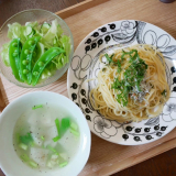 玉露園の梅こんぶ茶をモニター中です 梅こんぶ茶としらすのパスタを作りました 梅の爽やかな香りがするパスタです パスタもサラダもスープもグリーンばっかりの食卓になりました🍴 (材料)(2人分) パスタ 150g しらす 30g 大葉 5枚 梅こんぶ茶 大さじ1+小さじ2+小さじ1 オリーブオイ …続きを見る