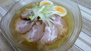 夏に厚いラーメンも良いけれど”冷やすらーめん”もお勧め冷たい塩スープにガッツリチャーシューを載せて食べると栄養のバランスも良いですこれにキムチをトッピングしたら尚よし