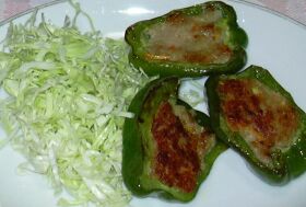 ハンバーグをあえて崩してピーマンの肉詰めに 美味しいハンバーグは味が付いているので、味付け不要