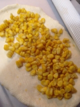 ⑤生地の上にコーンを乗せてくるくるーっと巻く