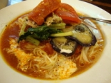 今日は 朝から暑かったので 冷麺 食べたーい 息子の好きな電車公園に行ってから お昼に 太陽とトマト麺 本店へ行ってみました 夏の新作 夏色トマト冷麺見た目はこってりっぽく見えますが 麺が細くて 食べやすいし トマトたっぷりで あっさりしてます トマト氷も入っていて 涼しさを感じます 野菜もたっぷり とってもおいしいのー 量もあって 結構食べれる私でもお腹いっぱいになりました 息子が前回行ったラーメン屋が苦手な味で ラーメンをあんまり食べなくなってしまったんで 今日心配したんですが トマト麺 おいしーって食べてくれて ホッとしました ご飯も頼んで リゾット風 完熟有機トマトとバジルサミコ酢 生クリームをソースに加え仕立てた 夏色トマト麺 麺も豆乳を練りこんだ豆乳麺を使ってるそうです 健康にもいいし 暑い夏に冷麺 いいですね 温かいチーズトマト麺もとってもおいしかったけど 冷麺もトマトに合うんですね 絶対 一度食べてみたら また食べたくなる味かも ブログ書きながら 食べたくなってる私 私がはまりそう とってもお勧めです 前回行った時も思ったんですが 女性が一人でも 気軽に入れる雰囲気なんです 私が行った時は 学生の女の子5人 女性一人 カップル ほんとに女性が多かったのにはビックリでした 定員さんも対応がいいし 子供にもニコニコしてくれて 明るくて感じが良かったです 女性一人でも気軽に入れるラーメン屋さんっていいですね みやげ麺キャンペーン開始! 太陽のトマト麺ファンサイト応援中 続きを見る