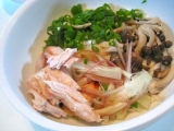 今日は豆腐や豆腐自然化粧品すっぴん素肌美計画で有名な盛田屋さんの豆乳うどんです この豆乳うどんって聞いたことあったけど 豆乳で作ったうどん? ピンとこなかったでも気になってたんやね! で、今回初めて食べたんですよ この盛田屋さんって宮城県の会社で 同封されていたカタログ見たら、すごいええとこなんやね これが 因みにこれがパンフなんやけど そしてこれがパンフの拡大図(盛田屋さん写真を勝手に使わせてもらっています) もう見て、こんなええとこで作ってるんやて こんなところで1週間ほどのんびりしたいよな 毎日豆腐食べて、温泉入って(温泉があるかは分らん)大豆ハンバーグ食べて 食べることばっかりやけど とにかく え所や行ってみたいなぁ工場見学とかね! 話が飛んでしもたけど これが届いた豆乳うどん 中はこんな感じ 平たい乾麺ですね で、説明は なんでもここは良い環境あってこそで、 ようは環境がいいから良い物が出来るって言うコンセプト なるほど そうやろうね!良く分かります そして麺には豆乳 スープにコラーゲンが入ってるんですね これはコラーゲン入りのスープ とにかく作ってみますね で、薬味は生卵はちょっとパスして ネギにみょうが そして、シメジとささみ ささみはもう簡単にグリルで素焼き シメジは石ツキとってレンジでチン すべて素材の味のみ これをトッピングに で、乾麺なんで硬さも加減できるし アルデンテにしようか? ノーマルにしようか? 少しアルデンテ 硬めにボイルしました 湯がく時に半分に折るって書いてあった どないして折るんやろうか? 悩んでみたけど 袋から出したら直ぐに分った ホンマただ半分に折るだけ ここでもう既に楽しんでる!! で、6~8分好みに湯がいて お湯切って、器に盛って 薬味やトッピン具をして コラーゲンスープをかけてOK ボイル後水洗いもしなくてよいし といって塩分が残ってて塩からい訳でもない (どーも60時間じっくり熟成乾燥したんやなぁ) 湯付きや釜揚げとは違うし 冷たくも無く熱過ぎも無く! はんなりと ぬくい感じがとても好感が持てましたよ 上の写真はスープをかける前 薬味のみょうがが涼しげでしょう? で、スープをかけて混ぜたところ(上の写真) なんか濃い色してるやん 辛くないのやろうか?心配! そして、食べてみると 色ほど辛くない濃くない え塩梅やん 少し甘くてトロッとしてる コラーゲンが500mg入ってるんやて そりゃトロミがあるわ で、麺はきしめんタイプみたいに平たい けどね、食感が違う!平たく食べ良くコシもある まあ、これは茹で方なんやけどね そして薬味に良く絡むコラーゲンスープと麺 これなら言う事無い 麺類大好きの僕も満足した 薬味やトッピン具もちゃんと素材の味を崩さず美味しく食べれた 豆乳うどんは、小麦100%のうどんとは味が違いましたね どう違うかって? 小麦粉の粉っぽさが少ない感じの味ですね 麺に豆乳の粉末が練りこんであるんですね スープはやはりコラーゲン入りなんで薬味など具にも良く絡み 美味しかった そして結構ヴォリュームもあった(トッピン具が多過ぎたのかなぁ?) うどんを食べながらコラーゲン500mgは摂れるなんて一石二鳥やん♪ おいしかったです盛田屋さんありがとう ご馳走さんでした 興味のある方は、こちらからHPへ行けます↓ 豆腐の盛田屋 豆腐の盛田屋ファンサイト応援中 続きを見る ['close']
