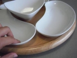 今日の写真では全体像がわかりにくいですがしっかりした作りの木製回転プレートで、大皿のおかずも楽々とりわけられますラバーウッドを使用しているのでつるつるしていて管理も楽なのが嬉しい回転させても全然ガクガクしないんですよ