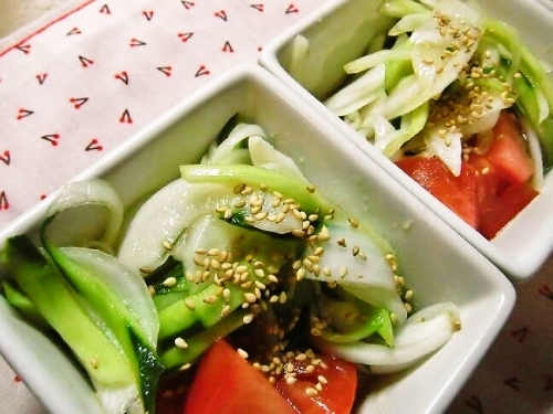 今の季節にぴったりな新玉ねぎときゅうりを使ったサラダです 細切りにした新玉ねぎときゅうりを、塩こさじ1、砂糖おおさじ2、酢おおさじ2でもみ、30分ほど放置します その後、オリーブオイルとお醤油をそれぞれおおさじ1ずつ加えて混ぜるだけ! お好みでトマトやハムなども入れてください! 実家の父がこれを気に入ってくれて、毎日食べていたら、血圧が下がってきたそうです 酢がいいのかな? 続きを見る
