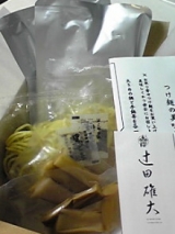先日、モニプラさんより、metsujitacojp/" target="_blank">めん徳二代目 つじ田 のつけ麺がやってきましたぁ 小さめの割にずっしりと重めの麺、スープ、メンマ、魚粉等、 全て2個づつでした 早速、 添付されていた「つけ麺の美味しい作り方」を読んで、 作ってみました あっ正確には、茹でましたかな(笑) 麺類が好きなうえに、かなり大食いな我が家 正直、コレだけじゃたりないかもねなんて思いながら 麺の茹で時間は6分から8分とあったので、 真ん中の7分きっちり茹でました 間違いなくっ ところがっ 茹であがった麺はぶよぶよで、 ひとまわり大きくなって、 いわゆる、のびきった麺 どうして?、時間どおりなのに と、ショックをうけながらも、 流水で表面のヌメリを洗いながして麺をしめると ↓ ↓ ↓ ↓ ↓ ↓ ピッカピカでもっちりな麺に、大変身 この麺、つけ麺用に改良した麺だそうで、 麺自体もほのかに甘く、 なにより、噛んだ時の麺の弾力がとても楽しいんです♪ もちろん、スープにもよく絡んで相性も良し 一緒に入っていた、太いメンマ、 それから用意していた、煮卵とネギをのせて完成です 豚骨比内地鶏の鶏がら魚介野菜他10種類の食材を元に作られた、 濃いスープの中に、煮豚が入っていたのにはちょっとビックリ できあがってみると、 パパ、私、お嬢(3歳)と3人分になりました それで、 食べる時には、こういうのがあって、 画像一番下の魚粉をまずスープに入れて、 3分の1食べたところで、上の酢橘果汁を麺にかけ、 残り3分の1になったところで麺に黒七味をかけて、 「食すべし」だそうです 私はその通りにやりました でも、 パパは、すべてスープの中に入れてしまっていました 人の話をちゃんと聞かない人です そのままでも十分おいしいですが、 こういう流儀にのっとって食べるのもまたイイものです 個人的には、酢橘果汁はなくてもイイかなと思いました (好み、ですよねっ) 3人、満腹です つけ麺って家で食べるってイメージがなかったので、 新鮮でしたっ 食べながら、 ママ友と、お家ランチっていう時に出てきたらいいかも なんて考えたりして 今度、東京に行く時は、並んで(笑)リアル店舗で食べてみたいです モニターに選んでいただきありがとうございました ごちそうさまでした めん徳二代目つじ田ファンサイト応援中 続きを見る