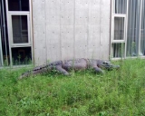 ある大学の中庭にどこからか脱げだしたワニを発見しましたおそらく縄を引きちぎってここまで逃走したもよう?!
