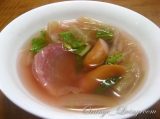 先日、モニプラさんで頂いた高砂食品社の『青森にんにくラーメン』醤油味を昼食にいただきました♪ 送られてきたものは麺とスープと乾燥わかめが袋に入ったもの 常温で保存というところが冷蔵庫一杯の時でも心配なしでうれしい(^^) にんにくって、がん予防や風邪の予防、滋養強壮や老化防止などすっごくたくさんの効用があるようで、ホントうれしい食品です♪ そのにんにくをおいしく手軽に摂れるのはホントうれしい♪ たくさんの野菜と茹で卵と一緒にいただきました(^^) 夫『あっさりしていて、おいしいね♪』 上の娘『おいしー❤おかわりするからね!』 下の娘『わたしもー!えっとね、ままは らーめんじゃーだね!らーめん つくるから(^^)』 ”ラーメンジャー”とはキティちゃんのビデオに出てくるラーメンを作りながら歌い踊るお姉さん達(^^) 私『そ、そぉ?じゃあ、「ラーメンジャー」って踊っちゃおうかな〜♪』 この青森県田子町産にんにくを贅沢に使った『青森にんにくラーメン』醤油味は、”にんにくラーメン”と言うくらいだから、にんにくが強烈ににおうのかなと思ったんですが、ソフトな匂い&あっさりしているのにコクがあり、上の娘にも下の娘にも大好評! 平日のお昼に食べても大丈夫! 麺も歯ごたえものど越しも良く、おいしー❤ モニプラさん、高砂食品さん、ありがとうございましたごちそうさまでした♪ こだわり麺工房 高砂ファンサイトに参加中 レシピブログと子育てスタイルのランキングに参加しています 緑の所をポチッと応援していただけると嬉しいです(^^) レシピブログ 子育てスタイル 続きを見る
