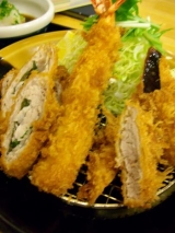 フードアナリスト協会とモニプラの企画で新宿の「とんかつ浜勝」に行ってきました西新宿ということでごちゃごちゃしていてなかなかお店が見つかりませんそんな中もしやここ?フードアナリストの企画にしては???という看板にひかれつつ階段を下りていくと新宿オフィス街のお店のような入り口が中に入るとカウンターもあり、こざっぱりとして客層も女性からサラリーマン、学生までとさまざま今回のお目当てはこれ梅しそまきとひれ膳1580円ですさっそく頼んでみると来ました写真と同じものがひれかつ、薄切り肉に紫蘇をまいたもの、エビフライ結構ボリューム満点ですまたごはんも白米、麦飯おみそ汁は白だし赤だしと選べます極めつけはキャベツ、香の物、ご飯、おみそ汁はお代わり自由これは男性に人気ですよねひれかつは柔らかく、肉まきはジューシーただちょっと量が多すぎかも2種類のソースとおろしポン酢で味を変えて何とかいただきましたここの店員さんたちは接客が気持ちよくとくにお客さんが帰った後の片付けに気配りがあり感心しました秋葉原のヨドバシカメラにもあるそうですぜひ電化製品のついでの食事に!!ランチもありましたよとんかつ浜勝日本フードアナリスト協会ファンサイト応援中 続きを見る ['close']