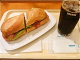 ↓まずはポチッとお願いします 昭和な喫茶店が減るなか、このお店には昭和な喫茶店に集っていたひとたちが多く見られる ドトールコーヒーショップさん♪ 店内は時間帯にもよるけれど、少々高めの年齢層でいつも決まった顔ぶれが(笑) お義母さんも買い物の途中で一休みするのは、たいていドトールコーヒーショップさんだと言う 今回は蒲田西口サンライズモールの中にある店舗に伺いました 実はこちらの店舗に伺う機会は蒲田民なのに少ないのです なぜならばわたしは自転車で行動することが多く、アーケード内は駐輪にたいへん不便だから 中に入るとやはり昭和な喫茶店な雰囲気で落ち着きます こういうチェーンでこういうのは珍しく、なのでドトールさんが好きなのかも わたしは吸わないけれど、喫煙者の方にも強いみかたですよね ▼ミラノサンド グリルチキンとトマトのソース (Sドリンクとセットで¥560) ミラノサンドは1つで軽い食事がわりになるし、野菜も多く使っているものが多くて好き 定番のものの他にこの「グリルチキンとトマトのソース」のように期間限定メニューがあると ついつい頼んでしまう 今回はどうかな? こうしてみるとチキンの存在感が結構ある 断面 塩焼きチキンサンドにマッシュポテトをはさんでトマトのソースがかけられてます トマトソースはバジルとオレガノのハーブの風味が効いています お行儀が悪いけれど、ペロッとめくってみました チキンの下にほんの少し顔を出している白いものはマッシュポテト ベビーリーフも入ってるし、結構手が込んでいるサンドです 半分にカットしてあるので、食べやすい 具によっては下にソースがたれるものもあったけれど、これは大丈夫 トマトソースはトマトが粗くカットされていて、チキンの美味しさを引き立てつつ、負けない風味 しいて希望をあげるなら、チキンやソースがもっと熱々な方が好きだなぁ 熱々のトーストしたてのパンの中が冷たいものとぬるいもので、なんとなく季節的にもっと熱い方が そう思ったのでした とかいいつつも食後はホットコーヒーを飲むのだけれど、食事と一緒の時はアイスが多いわたしです 美味しかったです ごちそうさまでした 仕事帰りにちょっとブレイクタイム、これから主婦に変身です ドトールコーヒーショップ ドトールコーヒーファンサイトファンサイト参加中 ▼総合3位が定位置になりつつ 「ブロぐるめ!」ランキング参加中! ぽちっと応援ご協力お願いします いつもぽちっと応援ありがとうございます ■宣伝■ 別ブログはじめましたこっちもよろしくね♪ 「悪あがき女製作所別館よりぬき餃子館」 http//ameblojp/gyozakan/ 続きを見る ['close']