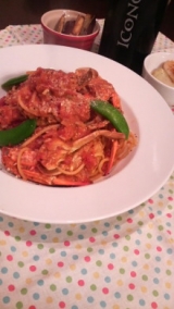 晩御飯は、渡り蟹たっぷりトマトパスタ!