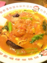具いっぱいのカーリー(カレー味)な太陽のトマト麺です