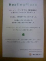 ◆healingplaza◆ハッピークリスマス 【限定】 α波オルゴールCD ←参加中モニプラさんで◆healingplaza◆さんのクリスマスソングのα波オルゴールCDのプレゼントを見つけましたこの絵を見ただけでも癒されちゃう感じがするのですが、入っている曲もとってもいい曲ばかりなんです曲は全部で14曲Totalで62分ほどのCDになっているそうです★Happy Xmas Songs/(赤鼻のトナカイジングルベルそりすべり)★サンタが街にやってくる★恋人たちのクリスマス/マライアキャリー ★クリスマスイブ/山下達郎 ★LAST CHRISTMAS/WHAM ! ★ママがサンタにキッスした ★きよしこの夜★WINTER SONG/DREAMS COME TRUE★恋人がサンタクロース/松任谷由実 ★ウィンターワンダーランド★HAPPY XMAS (War Is Over)/ジョンレノン★ウィーアーザワールド/USA For Africa★ホワイトクリスマス★We Wish You A Merry Christmas なんだかどれをとっても定番のクリスマスソングだし、誰が聞いてもハズレはないと思うのですが、私は本当に全部大好きな曲ですごく気になってしまいました◆healingplaza◆さんのサイトでは試聴もできるようになっているようですヒーリングプラザしかもこちらのCDなんだかどっかで聞いたことがある雰囲気だなと思っていたら、横須賀のHome'sの2Fの雑貨フロアで見つけたCDを売っているお店だったんですここで見つけたCDは癒し系のものがいっぱいで、お友達と「普通のCD屋さんには売ってないよね」って言いながら色々なCDを試聴し、結局2人ともCDを購入してしまった時のものだったんですそのCDがこちらのCDですピアノの音色が心地よくて、とってもよかったんです