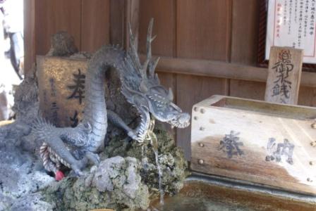 近所の弁天様(関東三大弁天のひとつ)にいる龍です 地下60メートルから地下水がわき出ているのですが、『お持ち帰りはペットボトル2本まで』と横にあります(白い但し書きがソレです)ということは、持ち帰る人もいるのかな? このほか、本堂には白龍の見事な絵があります