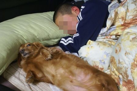 睡眠学習中と思われるテスト前の中学生長男と我が家のモカ(ダックス)です長男が小学校1年のときに家族になりましたこの頃、長男にシャンプーしてもらったりで、仲良しちょっとやきもちを焼いてるママでした