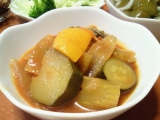 ズッキーニと、タマネギ、プチトマトをカレー風味に煮込みました