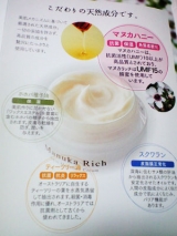 肌荒れ、しわ、たるみ…いろいろと悩みは尽きないお肌トラブル(><)今の時期はとくにお肌の乾燥が心配になってきますねついついスキンケアが面倒くさくて怠ってしまう人もいるでしょう洗顔して化粧水つけて乳液つけて美容液つけて…等々たまに面倒くさいですさて、そんな人にオススメかもしれないですよ!この商品オールインワン化粧品マヌカリッチ応援中マヌカリッチ「オア スキン モイスチャークリーム」オールインワンタイプの自然派スキンケアです1つでスキンケアが完了するのはぶっちゃけとっても楽ですよねマヌカハニーとは「マヌカの木」からとれる花の蜜のこと蜂蜜にはもともと抗菌作用がありますが、マヌカハニーはとても優れた抗菌活性作用が持つといわれていますそんな成分をたっぷり使っているマヌカリッチマヌカハニーニュージーランドのみに自生しているマヌカの花から採取される蜂蜜抗菌作用に優れており、年に2ヶ月程度しか採取できない稀少なものスクワランサメ類の肝油から抽出されるスクワレンを安定化させたオイル人間の皮脂成分に良く似た成分で肌のバリア機能に優れていますホホバ種子油ホホバの種子から抽出される油皮膚の乾燥を防ぎ、潤いを与えますティーツリー油オーストラリアに自生するティーツリーの葉を水蒸気蒸留して抽出殺菌消毒作用に優れています というこだわりの天然成分がウリでございますちなみにマヌカハニーは抗菌活性(UMF)が10以上が高品質なものらしくマヌカリッチはUMF15の蜂蜜使用ということで…高品質なものをたっぷり使っているらしいですちなみにお試しサンプルが→こちらから送料無料500円でGETできますさて、サンプル品をGETです!使ってみた感想をばまず、使い方ですが朝は洗顔する→マヌカリッチを塗る→化粧する夜は入浴する→マヌカリッチをぬるでOKとの事えーと、入浴の前にたぶん化粧は落としてある(洗顔済み)という前提だよね?ちなみに入浴後直後もしくは10分以内に塗るのが効果抜群なようですホイップクリームのようなきめ細かい濃密泡まデリケートなお肌をやさしく洗い上げてくれる「マヌカハニーソープ」で顔を洗う汚れや余分な皮脂を落とし、すっきりと洗い上げ洗顔後も肌をやわらかく整えてくれますちなみに無香料無色素無鉱物油パラベンフリーマヌカハニーの香りは甘くやさしい香り蜂蜜のやさしい香りですマヌカハニーソープ のもこもこ感っていいよね!詳しくはこちらの記事も参照してください あわあわしっかりあわ立て、やさしく洗顔した後さっぱりとした素肌にマヌカリッチを塗るだけするとマヌカハニー効果で肌環境を整えて保湿されるのですねということで、塗るちなみにサンプル品は1包に1g入ってます顔に必要な量は小豆大のクリームが目安ですちなみにとっても伸びがいい!との事でした←顔以外にも塗る予定なのでちょっと多めにとってますそうか…では早速ぬりぬりふむ(‘ノ‘)思ったよりも…伸びは…どうだろう小豆大だとちょーっと私の主観ですけども物足りない気がする伸び率…だけどこんなもんかな?もう少し伸びてくれるとうれしいかなあと、ちょっと薬くさいですね(^^;)もうちょっといい香りのほうがうれしいなそして、普通の肌のところは大丈夫なんだけどニキビができていた部分に少し刺激を感じました…(;ω;)ってかそこにはつけちゃいけなかったのかな?ということで2回目は避けてみたりしたさて、保湿効果ですが、全体的にしっとりしますそれでいて手とかにも塗ってみましたが適度な保湿でつけた後もサラサラとしてベタつかず付け心地もなかなかのものですたださっきも言いましたけどつける時にちょっと薬くさいなと感じ他のが気になったんですがそれもつけた後しばらくというか全体になじむころにはきにならなくはなりますのでさほど気にしなくても良いのかなとも感じますちゃんと肌がしっとりしていてべた付かないのがうれしいですねこれだけつけて寝起きしてみたけど、なかなかなGood…ちょっと気になる部分もあるけどなかなかのものですうーん、でもちょっと時間がたつとかさつきが気になる部分も出てきたもう少したっぷりつけたほうが良かったのかな??でもこれひとつでしっかりとスキンケアができるのならば忙しい人は重宝しそうだとおもいます←気になった方はクリックオールインワン保湿クリームのマヌカリッチ オア スキン モイスチャークリームはこの時期荒れ気味の唇などにも塗れますが、なかなか良い感じです♪さてさて、今回もマヌカハニーソープにも触れたいと思いますこの前サンプル品でしたけれども見てくれ!本品!濃い!ハニーの色が濃い!使い心地は前回も言いましたがやさしく保湿も適度に保ちさっぱり洗いあがります♪でね、おもったんだけどさマヌカハニーソープの使い心地もいいというのも実感しているわけだがそれはおいておいて、ちょっと見てくれ↑このパッケージ、おしゃれというかかわいいと思いません?このパッケージだけで