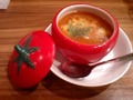 まずは、トマトのカップでミネストローネが登場かわいいっ だとするとメニューにあったパンプキンスープは、かぼちゃのカップってこと 次回はパンプキンスープをオーダーして、確かめなくちゃねスープにはチーズが入って、コクとまろやかさが加わり、体も気持ちも温まります