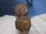 今年もあと数時間で終わってしまいます あれもやってない、 これもやってないと 今この時間になってからワラワラと動きだす私(笑 ブログでもやり残したことがあるので、 大慌てで書いてみたりする まずは前回のクバのヌンチャク 写真を撮りました♪ ずっしり重いんです、これが アップで見るとこんな感じ 別の角度だと、こうなります 木の繊維の感じがわかりますか? ヌンチャクのお尻側(?) こちらの方が椰子っぽい繊維の感じがわかりやすいですね いかにもささくれ立ちそうでしょ?(笑 このクバのヌンチャクは、 只今袋に入って保管中♪ 何といっても貴重な木ですから、 いざという時まで大事にしておかなくては(笑 さて、やり残したことがもうひとつ モニター当選した骨盤Fitness どんな動作が効いたのか、です いろいろ権利の問題もあるでしょうから、 どこまでここで載せていいのか分かりません なので、 オフィシャルで公開されている動画を使って説明しますね 下のリンクからプロモーションの映像を見ていただけるのですが、 その中で45秒あたりに出てくる動作(笑 「基本のエクササイズ」って表示があるときの動作です! Youtube 『Wiiで骨盤Fitness』プロモーション映像 分かります? 相撲の土俵入りみたいな動作なんですが、 これ、結構骨盤にきますよォ! 動画の後半でもチラッと出てきますが、 私は左の骨盤のあたりが痛かったァ もし、お店で見かけたら、 ああ、これだなぁって是非手にとってみてくださいネ Wiiで骨盤Fitnessファンサイトに参加中 さて、こんな感じで? 今年ブログでやり残したことを書いてみました なかなか更新しないブログでしたが、 来年はもう少し頑張って更新していこう、うん 今年一年、 つたないブログにお付き合いいただきましてありがとうございました 年を越える頃に近所の神社に行って、 道場のしめ縄をお焚きあげしてもらいに行きます 明日の朝は元旦マラソンのお手伝いに行くので、 (市の空手道連盟で18年に1度、当番が回ってくるらしい) お焚きあげから帰ってきたら、 いつまでも夜更かししていないで早めに寝ますね 続きを見る ['close']
