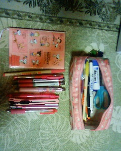 筆箱と手帳です 筆箱は見た目もピンク! 中は気が付いたらピンクがいっぱいになってしまいました! いつもこれを見てると癒されます!