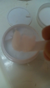 そもそもの長期モニターなので2回目投稿ですはや、届いてから2か月ほどか改めてのこちらが商品です 中身は真っ白でまるで石鹸のよう ヘラがついてい