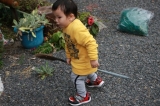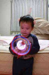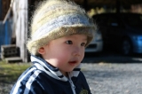 ばーばの毛糸の帽子、洗ったら縮んでしまったそうですよし君にかぶせたらぴったりで、よし君帽子となりました そして、水疱瘡になっていたあたりの夜、よ
