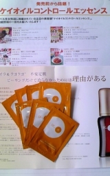Drk 新製品2011年2月25日(金)発売予定の新美容液 『ケイオイルコントロールエッセンス』を 発売前に1週間分 パウチ7包を使ってみました こちらの美容液は毛穴テカリニキビ皮脂など気になる方 オススメの美容液ですが 個人的には午後からの顔の皮脂が気になっていたので 早速使用 いつもなら 油取り紙にたくさん取れる皮脂も この美容液を使うと半減して驚きです お顔のTゾーンが気になる方には使ってみる価値のある 美容液です 美肌をサイエンス ドクターケイファンサイト応援中 ケイオイルコントロールエッセンス 続きを見る ['close']