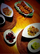 3/9(金)の夕食です きのうの夕食は、串カツ蓮根&豚肉&人参のきんぴらとブロッコリー豚汁ごはんでした 串カツは、豚小間を適当に串に刺し、フライにしました 豚小間だとジューシーでお安い&食べやすいのでうちではいつもこれです パン粉も油の吸収が少ないパン粉を使ってカリッとあげてます ソースは、ケチャップ&ソース&すりごまを混ぜ、からしをつけていただきました やっぱり、串カツは揚げたてが最高 今日も用事があり実家のお手伝いに行ってきます こちらも参加しました素敵なブログがたくさん 続きを見る ['close']