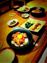 2/22(水)の夕食は、、 鮪のユッケ丼とポークソテー玉ねぎソースなどでした 鮪はかなりお安い200円程度のお刺身ですが、ユッケ丼や漬けにすると美味しくいただけますあとは、2/21(火)の夕食は、、なんと、ザお寿司 それも、そのまま ひとりごはんの時はこんな感じです こちらも参加しました素敵なブログがたくさん マイ味噌ってすごくない????楽しそう!! ◆仕込人募集◆自宅でお味噌を作ってみませんか?(8名様モニター) ひかり味噌株式会社 続きを見る ['close']