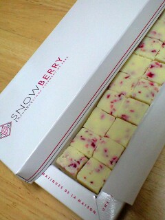 生チョコ発祥のお店、平塚シルスマリアの生チョコスノーベリーです ホワイトチョコに、フリーズドライのイチゴが入っていて、甘酸っぱくて美味しいですよ 見た目も女の子向けで可愛らしいので、ホワイトデーにプレゼントしたら喜ばれると思います♪