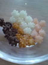 昨日のお茶菓子はキラキラ 金平糖 でした 以前話題にした京都の 緑寿庵 さんのです焦げ茶がチョコレート、薄茶がコーヒー、うす紅がトマト、白がミルクで
