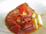 創業1906年の、九州熊本の味噌・醤油の醸造元 ホシサンの万能醤油にたき一番を使用して、鯛のあら煮を作ってみました血合いなどを取り除いた、金目鯛のお頭半分に、沸騰したお湯を回しかけておきます長ネギの青い部分と、しょうがのスライス3・4枚、水1カップ、万能醤油50mlを鍋に入れて、煮立ったら金目鯛を入れて煮込み、後から、ぶつ切りにした長ネギの白い部分と、下茹でした大根を入れて煮込んで完成です煮込み料理は、ダシや調味料のバランスを整えないと、味が決まらないのですが、今回は万能醤油だけなので、とっても簡単で、きちんと味が決まりました甘めで濃い目の味付けなので、白いご飯が進む味です煮物や丼ものなどにも使えそうなので、一本常備するととても重宝しそうです九州熊本の味噌醤油醸造元ホシサンファンサイト参加中