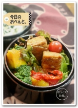 今日のお弁当は、厚揚げの肉巻き弁当です厚揚げの肉巻き焼きパプリカのマリネゆでブロッコリかぼちゃのたいたんとぷちとま現品【リンネル掲載】美容と健康にオーガニック