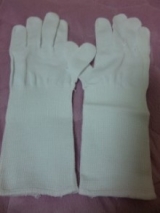 手袋にしては、少々長くちょうどゴム手袋の長さに合わせたような感じでございます